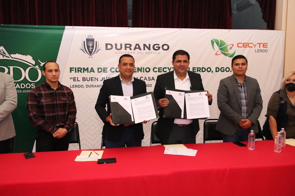 Diego Flores Arreola, director general del Colegio de Estudios Científicos y Tecnológicos del Estado (CECyTE) de Durango, firmó un convenio de colaboración con Homero Martínez Cabrera, Presidente Municipal de Lerdo, Durango, durante el acto protocolario ambas partes reconocieron los esfuerzos realizados para la creación del acuerdo, afirmando que este vínculo será fundamental para la construcción de una mejor sociedad y sobre todo para la formación de más profesionistas.
