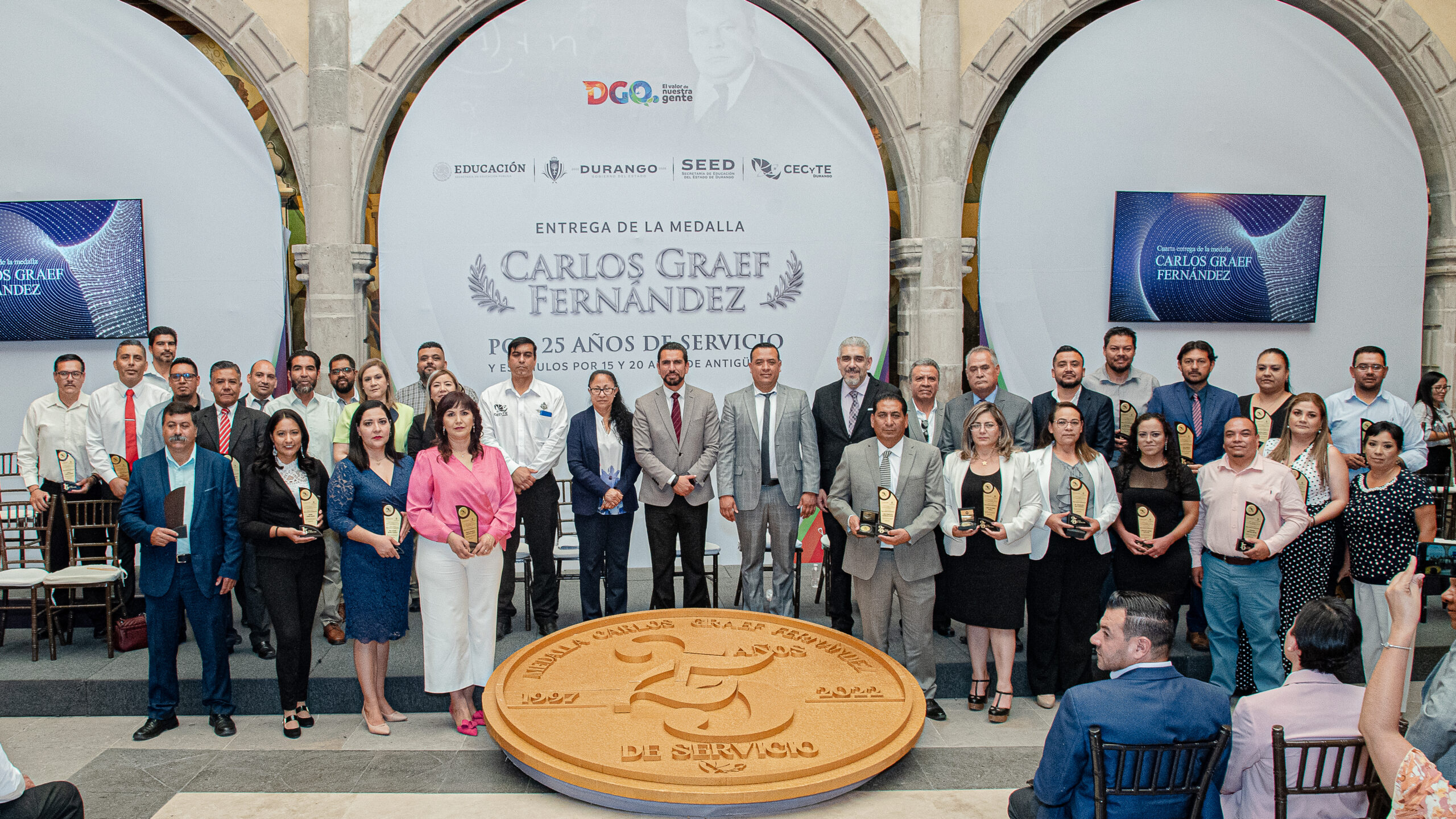 El Colegio de Estudios Científicos y Tecnológicos del Estado (CECyTE) de Durango reconoce y celebra a los directores, docentes y personal de apoyo que cumplen 15, 20 de antigüedad y 25 años de servicio en los planteles del colegio donde se brinda educación media superior y que además de formar estudiantes han realizado diferentes actividades que transformaron a este subsistema por más de 28 años, así lo detalló, Diego Armando Flores Arreola, director general del CECyTED.
