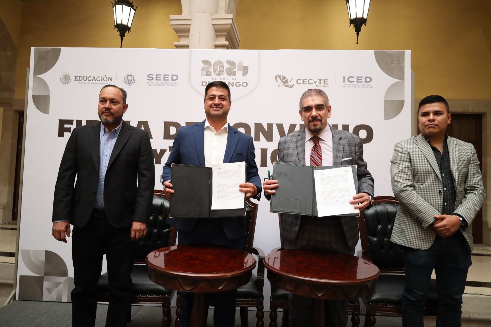 - Este convenio entre el CECyTED y el Instituto de Cultura del Estado de Durango (ICED), tiene como objetivo establecer las bases y mecanismos operativos para la coordinación, desarrollo y ejecución de programas, proyectos y acciones de vinculación, entre los estudiantes del colegio en temas como asesoría y capacitación, programas de responsabilidad social; actividades artísticas, cursos y talleres, publicaciones, organización de eventos de extensión y difusión, así como elaboración de programas de interés común, en beneficio de los estudiantes y docentes.