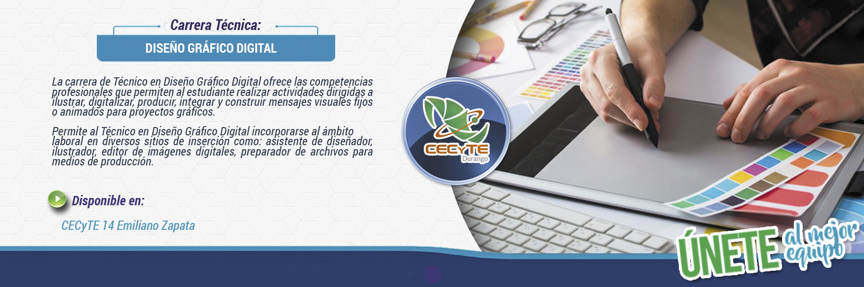 La carrera de Técnico en diseño gráfico digital ofrece las competencias profesionales que permiten al estudiante realizar actividades dirigidas a ilustrar, digitalizar, producir, integrar y construir mensajes visuales fijos o animados para proyectos gráficos.