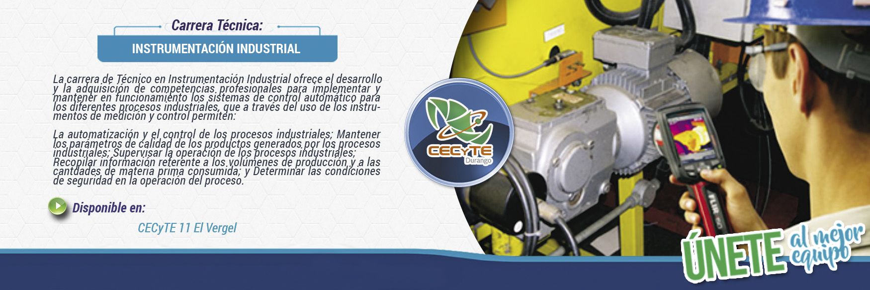 Dado que México es un país en constante crecimiento industrial, que ocupa el segundo lugar de los países emergentes, según el informe sobre el desarrollo industrial 2011 de la Organización de las Naciones Unidas para el Desarrollo Industrial (ONUDI) y que, exceptuando a China, se ubica por encima de los países BRICS y a nivel mundial ocupa el lugar número 30 de 118 en el índice de desempeño de competitividad industrial (IDCI); y que lograr la eficiencia en los procesos productivos mediante la automatización de los procesos industriales tiene cada vez mayor demanda, la carrera Técnico en Instrumentación es una excelente opción para la formación de recursos humanos capaces de desempeñarse en el sector productivo, para hacer de la industria mexicana el factor que siga impulsando el crecimiento y desarrollo sostenible del país.