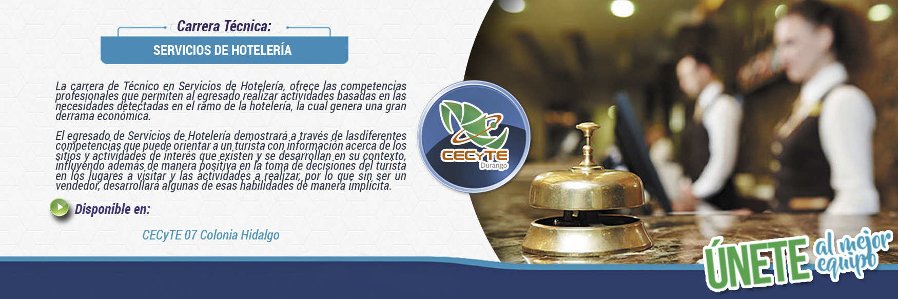 La carrera de Técnico en Servicios de Hotelería, ofrece las competencias profesionales que permiten al egresado realizar actividades basadas en las necesidades detectadas en el ramo de la hotelería, la cual genera una gran derrama económica.